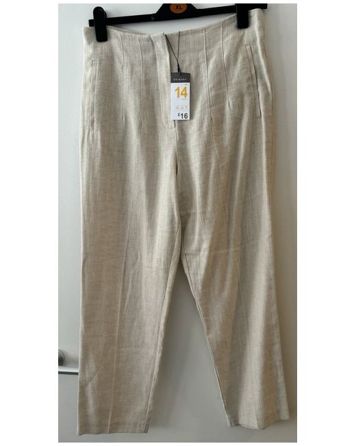 Elevate your wardrobe with these stylish Primark trousers in a UK size 14. Perfect for any occasion, these dress pants feature a straight leg style and a comfortable fit, making them a great addition to any woman's closet. With pockets for added convenience, these trousers are made from a lightweight and breathable blend of polyester, linen, and cotton, making them perfect for all seasons. The beige colour adds a touch of sophistication to any outfit, making them ideal for both formal and casual occasions.