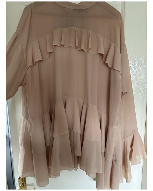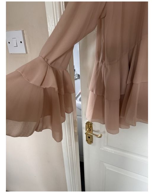 Women's Beige mocha Ruffle Layered Tiered Statement Sleeve Blouse 16