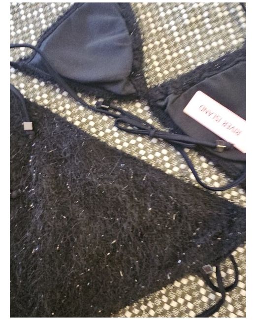 Make a statement at the beach or pool with this chic black fluffy string bikini from River Island. Designed with a triangle top and bikini bottom, this piece is perfect for any woman who wants to show off her style. The bikini is made from high-quality materials and features a comfortable fit that will keep you looking great all day long. This bikini is perfect for women who want to look their best while having fun in the water. The black colour adds a touch of sophistication to the overall design, and the fluffy string detail adds a unique touch that will make you stand out from the crowd. Whether you're lounging by the pool or taking a dip in the ocean, this bikini is sure to turn heads.