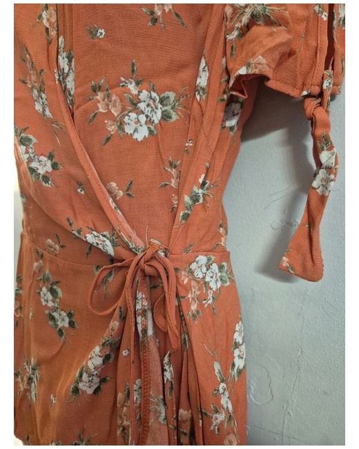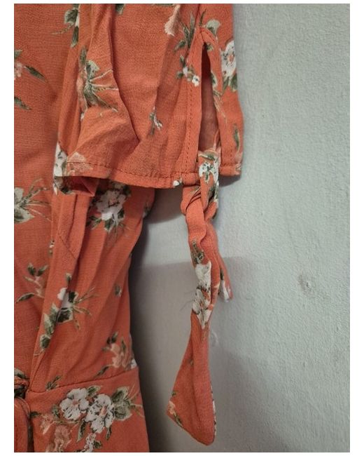 This New Look ladies wrap top in size 14 features a stylish floral pattern in a coral colour. The top has a flattering V-neckline and short sleeves, perfect for a casual yet chic look. Made from viscose material, it offers a comfortable fit and a trendy wrap style that is versatile and easy to wear. Ideal for any woman's wardrobe, this top is a fashionable and vibrant addition to any outfit.