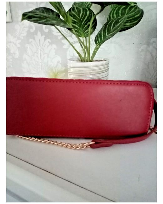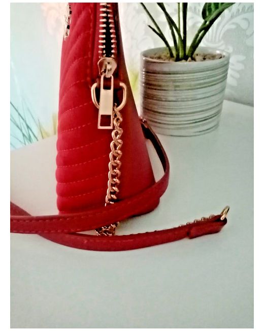 The interior is lined with soft polyester, two inner pockets in a matching shade of red. Shoulder strap length 132 cm.