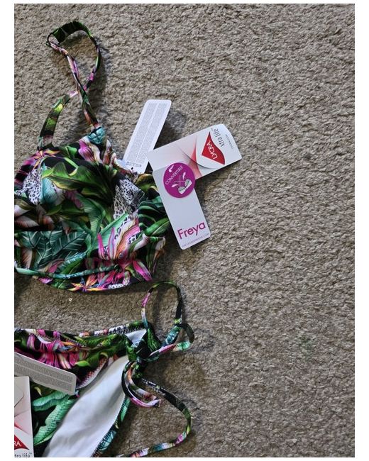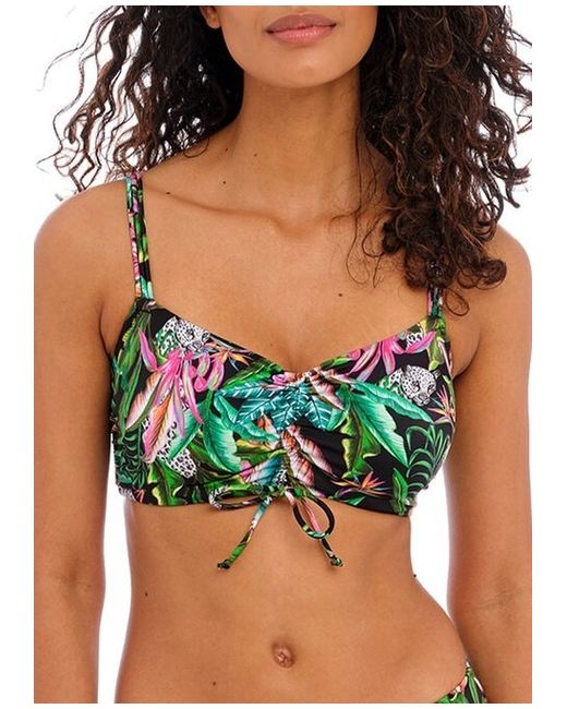 Embrace the summer vibe with the Freya Cala Selva Bikini Bralette. Designed in a lively jungle green, this swimwear piece is a standout with its floral pattern and racerback strap type. It's tailored for women seeking both style and comfort, featuring a size 36E bralette that's convertible and padded, ensuring a customisable fit. The bikini is crafted from a blend of materials including polyamide, nylon, and elastane, providing a comfortable and breathable fit. The garment is lined for extra support and has adjustable straps for a secure feel. Suitable for hand wash only, this multiway bikini is a must-have for your swimwear collection.