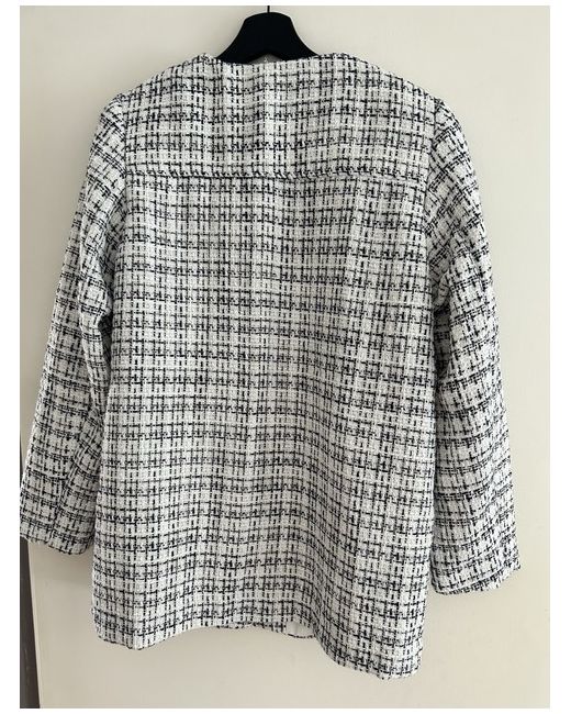 Elevate your wardrobe with this stylish Boucle jacket from H&M. The collarless design and white and blue colour palette make this jacket a versatile addition to any outfit. The polyester outer shell ensures durability and longevity, while the regular size medium fits true to size. This jacket is perfect for any occasion, whether it's a casual day out or a formal event. The women's department has designed this piece with a modern twist, making it a must-have for any fashion-forward individual. Add this jacket to your collection today and elevate your style game. It is new without tags.