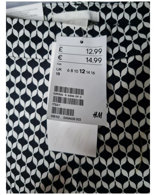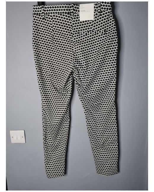 H M Monochrome Black Patterned Trousers 10 Regular BNWOT