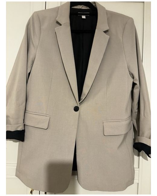 This beige blazer from H&M is a must-have for any fashion-forward woman's wardrobe. With a mid-length and padded features, it's perfect for any season - whether you're layering up in autumn and winter, or enjoying the lighter weight of spring and summer. The blazer is made from cotton with a polyester lining, and features button closure and accents. It's a regular fit and comes in size small, making it a great option for any woman looking for a versatile and stylish blazer. Whether you're dressing up for a varsity-style jacket or simply want to add a touch of sophistication to your outfit, this blazer is sure to be a go-to piece.