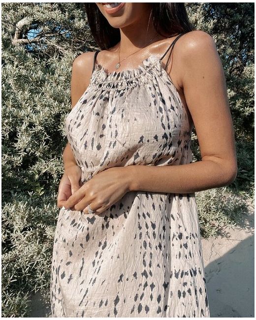 H&M Lyocell Blend Beige Black Long Maxi Spaghetti Strap Dress size M suggested to fit UK 12 14, with the relaxed style should also fit size 16 UK. Airy, calf-length dress in a woven lyocell blend with a slight sheen.