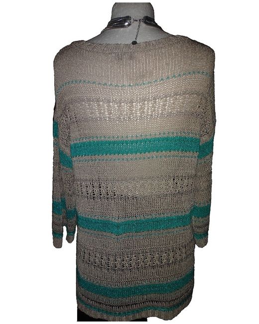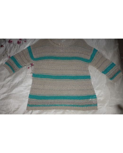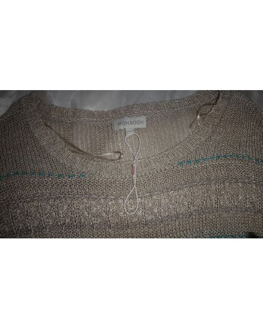 This Monsoon jumper in a beige mix features a striped pattern, open-knit design, and 3/4 sleeves. The round neck and relaxed fit make it versatile for travel, parties, casual wear, or work. Made from 87% acrylic and 13% nylon, it's a stylish pullover for autumn, winter, or spring.