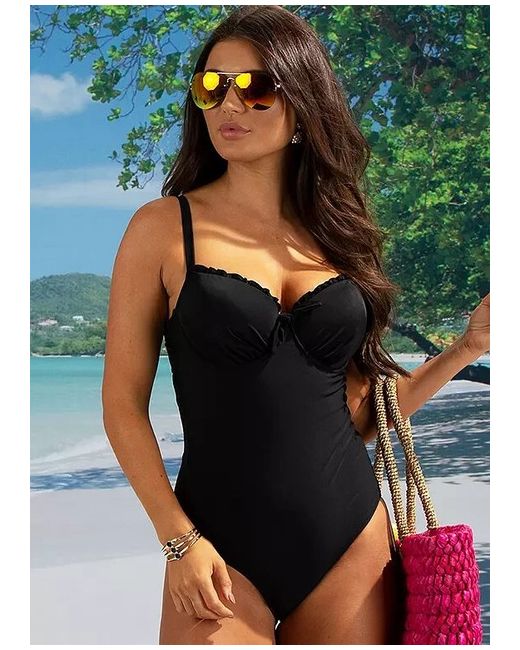 New Ladies Black Sicily Frill Tummy Control Padded Swimsuit 18