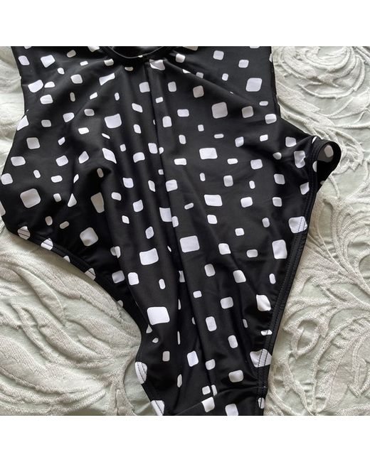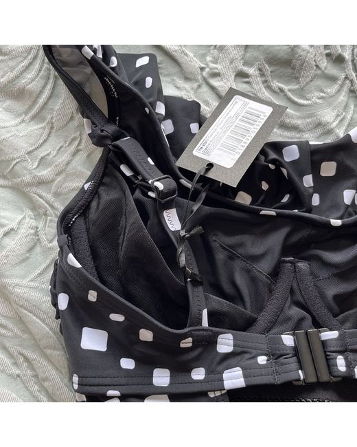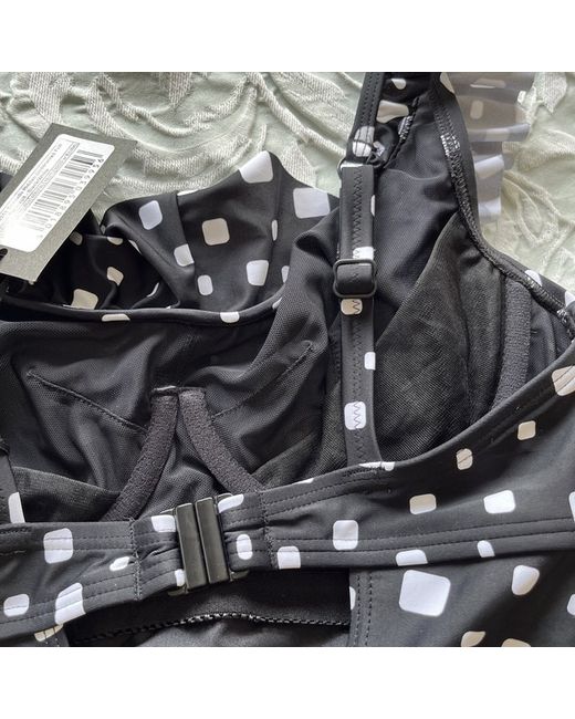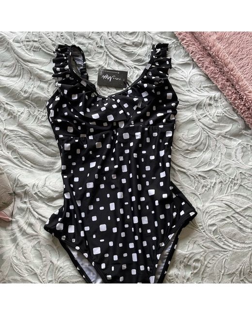Pour Moi Cascade swimsuit black and white polka dot spot With frilled straps and front and key hole back Hidden underwired cups Tummy control Size 32DD