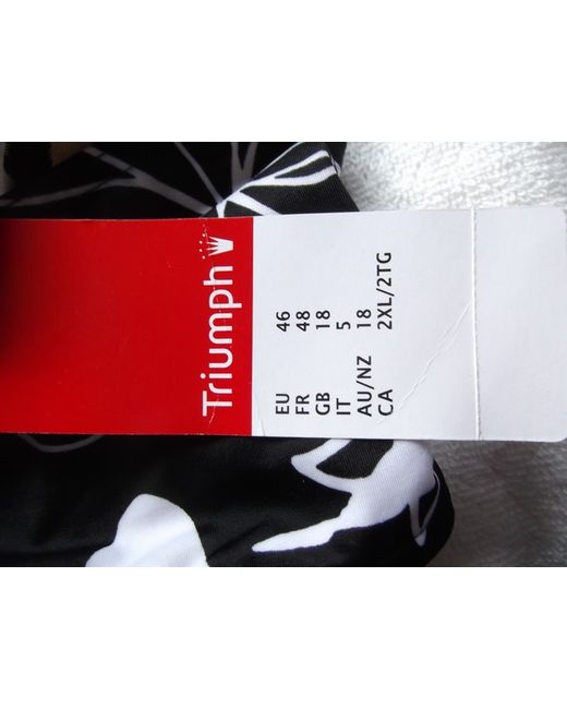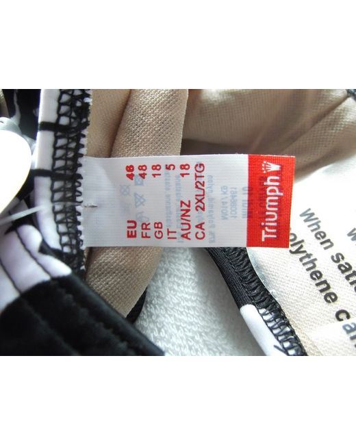 A fab pair of black and white adjustable ruched side midi bikini bottoms in size 18 from Triumph. Nylon and Elastane. Hand wash.