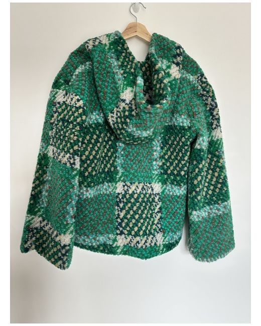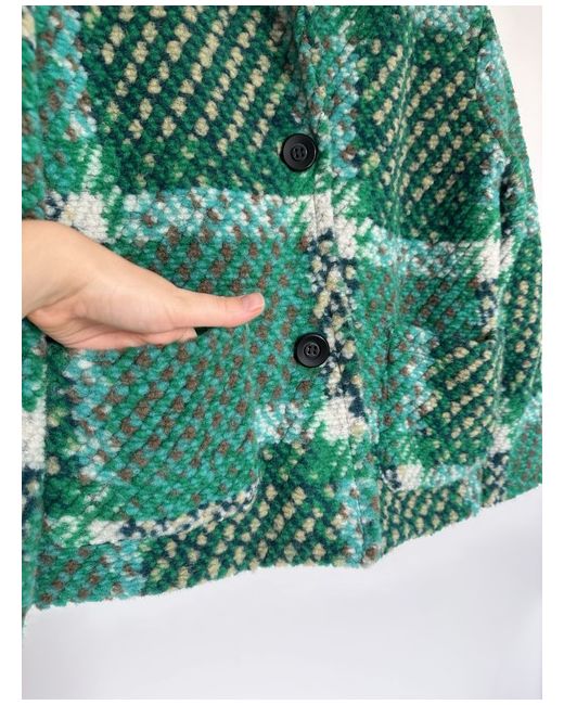 The coat is crafted from high-quality wool, tweed fabric and features a multicoloured pattern with button accents, front 2 pockets and a hood. It features long bell sleeves, a lined interior, and pockets for added convenience.