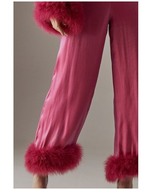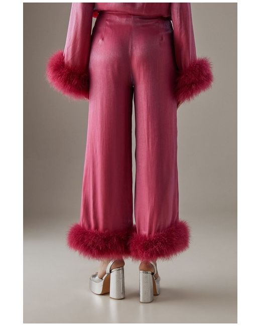 The iridescent fabric catches the light beautifully, whilst the opulent feather trim at the cuffs and hem adds a touch of old Hollywood glamour. Style these trousers with a sleek, fitted top to balance the voluminous silhouette.