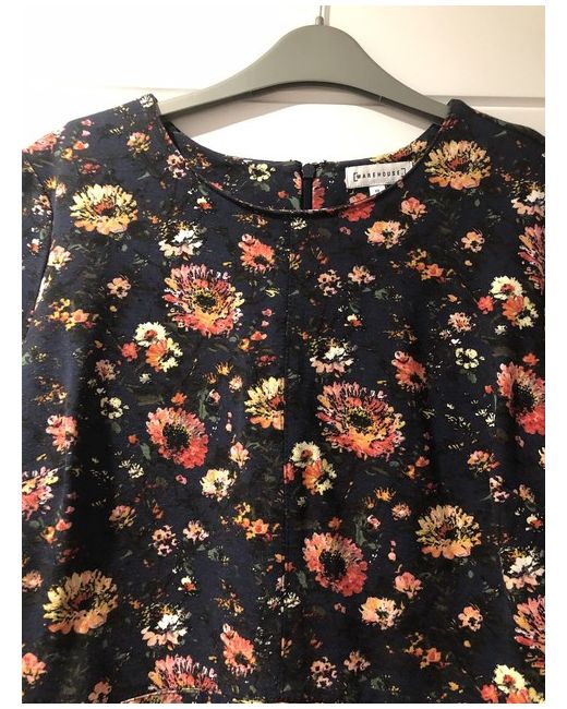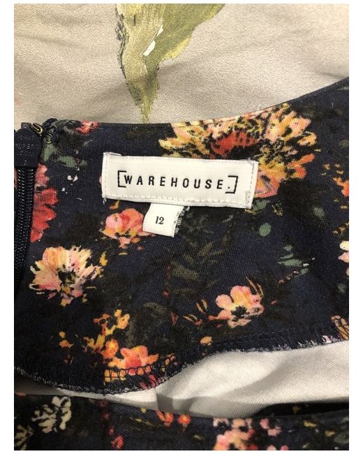 Woman Navy Blue Floral dress, Warehouse Size 12, short sleeves, back zip