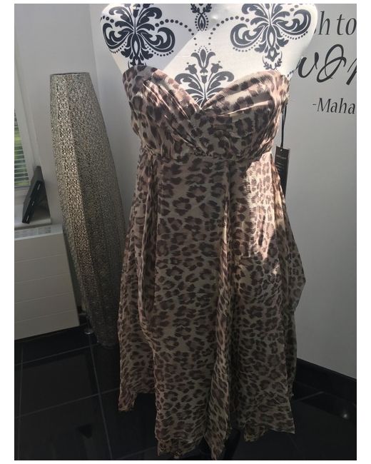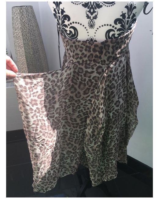 SPOTLIGHT by WAREHOUSE 100% Silk Leopard Print Drape Section Dress s12 rrp £75. Lovely empire line silk leopard print dress, with shaped neckline. Skirt is fully lined with brown silk underskirt.