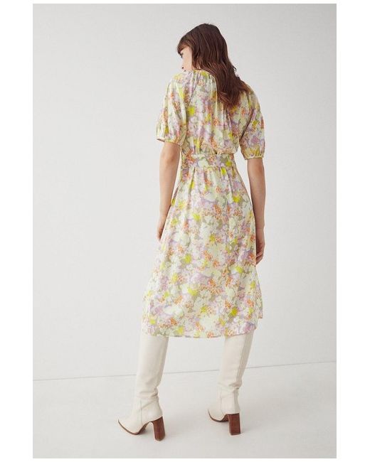 Ex Daffodil Print Cowl Back Button Through Frill Wrap Summer Dress