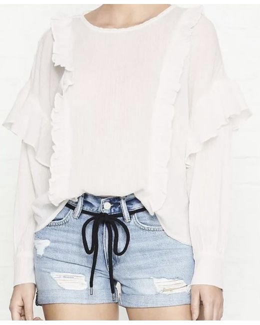 Elevate your wardrobe with this stunning All Saint White Ruffle Blouse. The long sleeve blouse features exquisite ruffle accents on the front, adding a touch of elegance to your attire. The blouse is available in size XS. This beautiful blouse is ideal for various occasions, including formal events, dinner parties, and work meetings. The blouse's white colour blends well with any outfit, giving you the freedom to pair it with different clothing styles. The All Saint White Ruffle Blouse is a must-have for any fashion-forward woman who values quality and elegance.