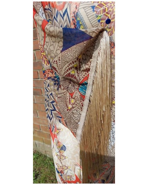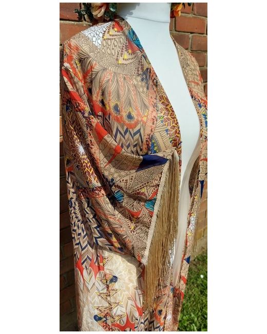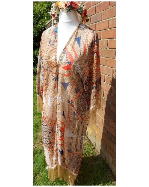Beautiful designer long kimono with gold luxury tassels. Perfect for festivals party poolside beach and cocktail hour. One size fits all. Wedding to holiday wear, this is stunning. Fabric is a beautiful design very Downton Abbey. Commissions Available. Please view my other items.