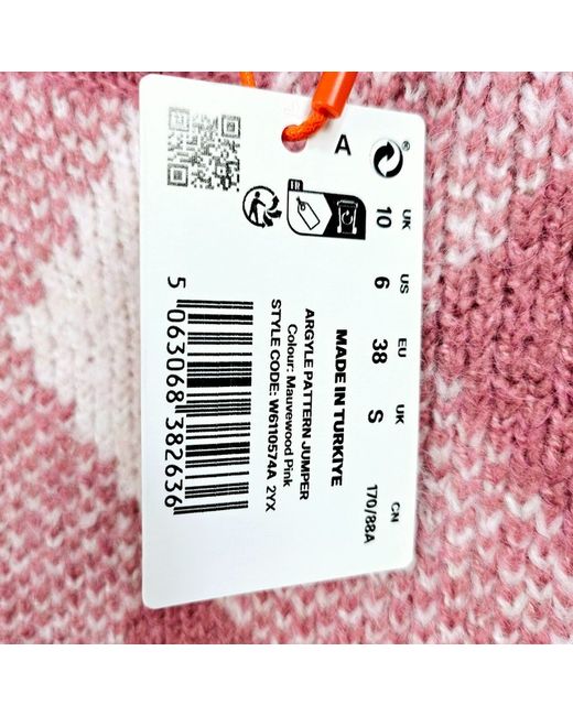 Women's Pink Argyle Pattern Jumper UK 10 RRP 60