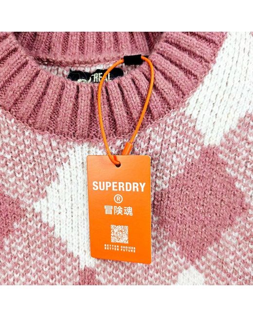 Superdry - Argyle Pattern Jumper - Pink - UK 10 - RRP £60