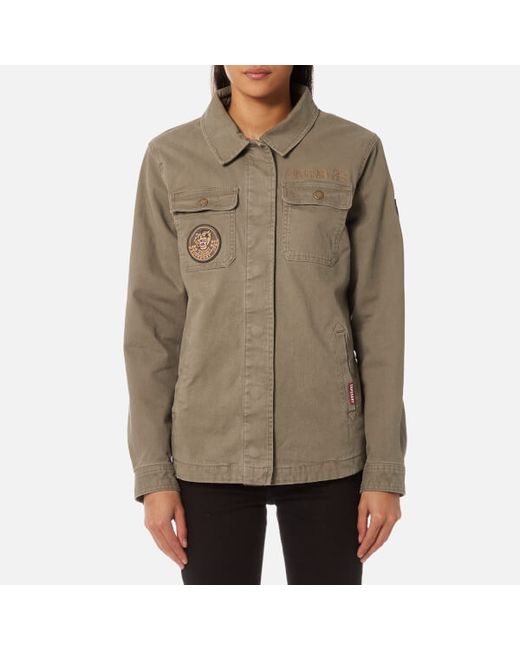 Superdrymilitary-inspired jacket from Superdry. Crafted from cotton canvas, the ‘Rookie’ jacket is designed with a concealed snap fastening, chest patch pockets and large floral tiger embroidery to the back.