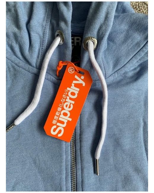 SUPERDRY Luxe Loopback Ziphood Size M - Blue. The classic Superdry hoodie comes with a drawstring adjustable hood and two front pockets. The hoodie is finished with a Superdry logo tab on one sleeve.
