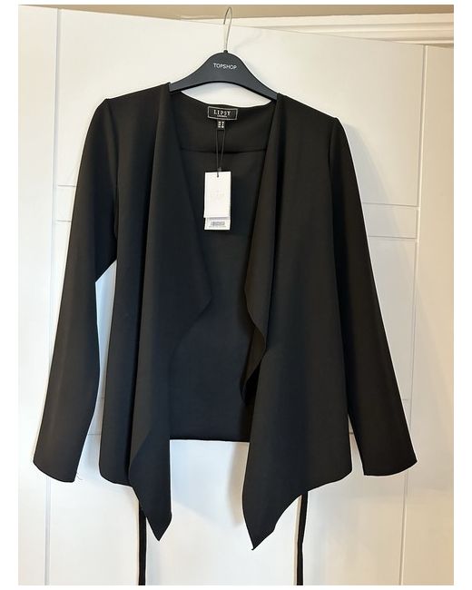 The sleek black design is perfect for any occasion and the polyester outer shell material ensures both comfort and style. The jacket is designed with a waterfall style and falls to a flattering length.