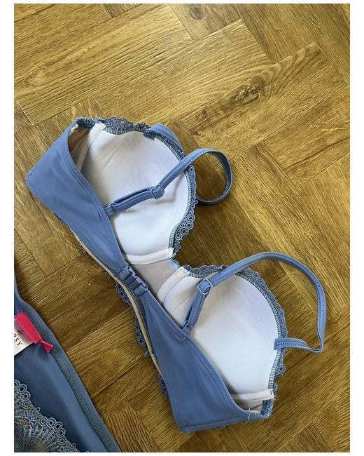 Lipsy Bikini Padded push up bikini top Lace effect with nude lining Cornflower Blue Top : 34C Bottoms : Size 14 (UK) From a smokefree home