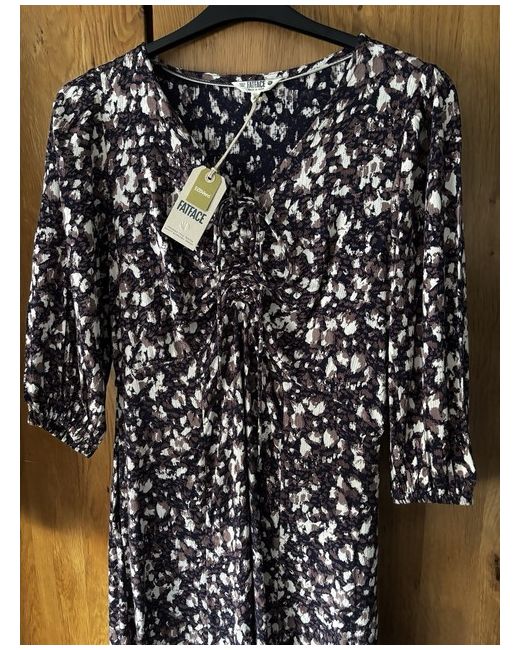 Lovely Fatface dress size 14 regular midi. Multi coloured cream black and browns. It has 3/4 sleeves and 2 pockets hidden in side seams. It’s very flattering on with slightly fitted top falling to a flared skirt