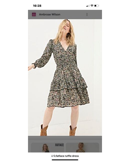 Gorgeous dress, very flattering shape Wrap type top and ruffle skirt Shirred waist and cuffs I’ve included some stock pics too as it’s hard to describe 😊 Having a ruthless clear out!