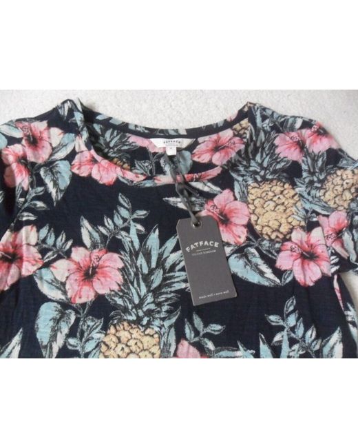 1 x Fat Face Devon style navy mix pineapple punch print lightweight cotton/modal short sleeve side comfort vent tunic top. item is great for dressing up with heels, knockout accessories and tailored trousers, or can be dressed down for a more casual look with jeans or jeggings.