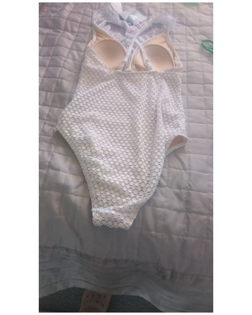 Look stunning at the beach in this white one-piece swimsuit. The size 10 regular fit is perfect for any woman looking for a comfortable and flattering option. Made by a very reputable brand, this swimsuit is sure to last for many summers to come. The classic white colour is both timeless and versatile, making it easy to pair with any outfit. Whether you're lounging by the pool or taking a dip in the ocean, this swimsuit is the perfect choice.