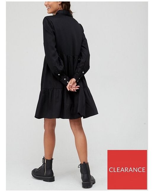 Occasion: Casual, Party/Cocktail, Workwear. Neckline: Collared. V By Very Shirt Tiered Shift Dress. Tiered skirt adds shape. Washing Instructions: Machine Washable. Dress Length: Knee Length. Colour - Black.
