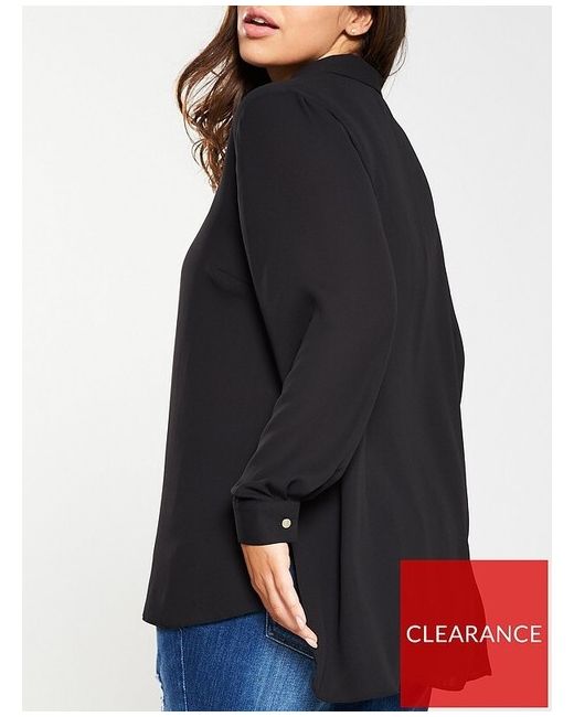 V By Very Curve Button Through Longline Shirt. Longline shirt from V by Very Curve. You won't go wrong with this LBS (little black shirt!). from V by Very Curve. Longline cut and stepped hem, creating a slimming look.