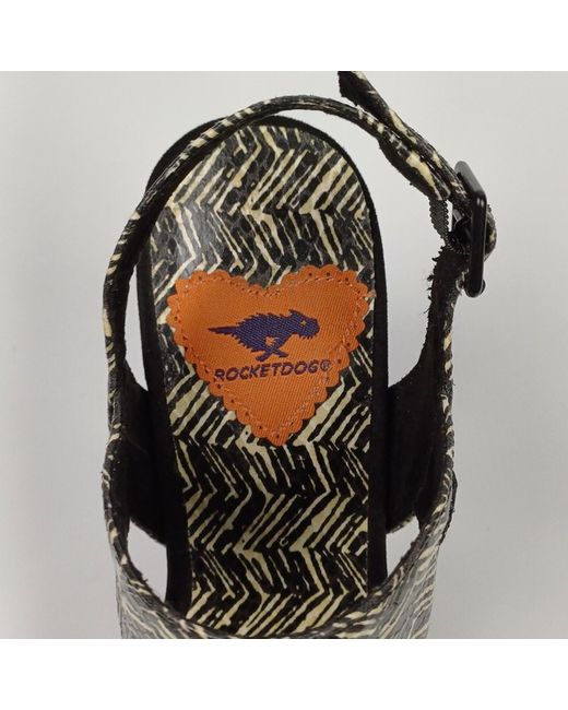 Women's Beige Rocket Dog Black Cream Patterned Heeled Platform Sandal UK 4
