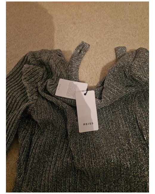 Elegantly crafted to flatter your silhouette, this Reiss bodycon dress is a stunning choice for party or cocktail events. Its knee-length cut and long sleeves offer a sophisticated profile, while the zip closure ensures a seamless fit. The silver hue lends a touch of timeless glamour, making it a versatile addition to your wardrobe. Crafted from high-quality polyester, the dress promises both comfort and durability. Designed with the modern woman in mind, it's available in a size 10 and caters to regular size types. Embrace a refined aesthetic with this exquisite piece from Reiss, a brand known for their attention to detail and contemporary style.