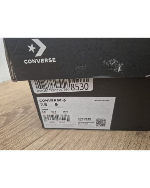 This product is a pair of Converse Black Chuck Taylor Construct Hi Canvas unisex top trainers in UK size 7.5. The high-top style features a lace-up closure and is made of textile fabric with a rubber outsole. The trainers are part of the Chuck Taylor Alt Star product line and have accents of lace and the Converse logo. They are designed for unisex adults and come in a classic black colour, making them a versatile and stylish choice for everyday wear.