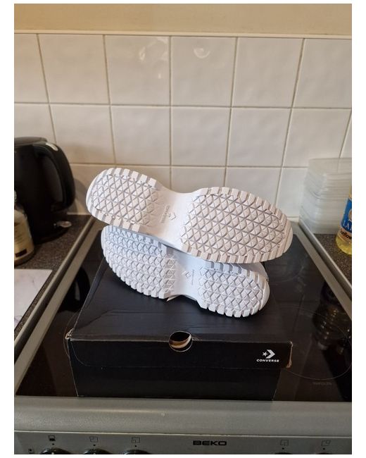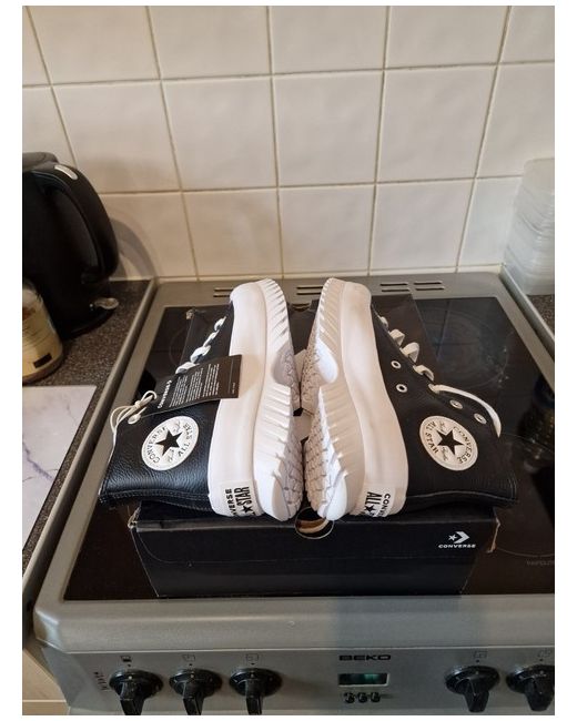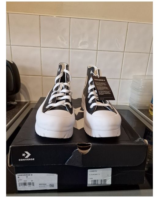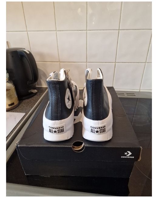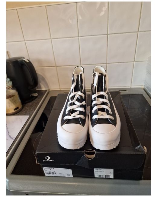 Elevate your casual style with these chic Converse trainers. Perfect for any woman who loves a comfortable and stylish shoe, these sneakers feature a classic black and white colour scheme that will match any outfit. Crafted with quality materials, these trainers are built to last and provide the perfect finishing touch to your daily look. Designed with a focus on both fashion and function, these Converse trainers are a must-have for any modern woman's shoe collection. Whether you're running errands or heading out for a night on the town, these sneakers will keep you looking and feeling great. So why wait? Step up your shoe game today with these fabulous Converse trainers!