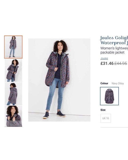 Joules Navy Ditsy Floral Golightly Waterproof Raincoat Size 10. Lightweight suitable for travel.