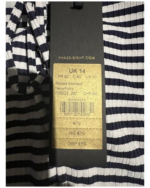 Step into comfort and style with the Phase Eight Women's Swimsuit, a perfect blend for your poolside relaxation or swim sessions. Crafted in a classic dark blue with crisp white stripes, this swimsuit is a stylish staple for the summer months. The size UK 14 ensures a flattering fit for those who prefer regular sizing. With its sleek design and timeless colour combination, this swimsuit offers both functionality and fashion. The esteemed Phase Eight brand is synonymous with quality, ensuring that this garment is not only chic but also durable. It's a versatile addition to any wardrobe, tailored for the modern woman who values both comfort and style.