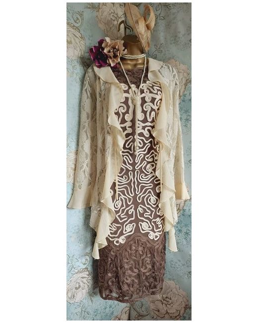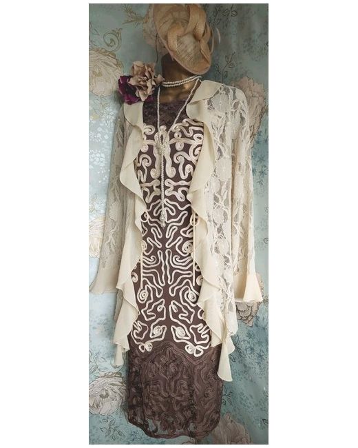 This beautiful phase eight dress is lovely for any occasion. Brown praline lace dress with cream embroidered tapework design. stretchy lace dress.Fully lined also with a stretch jersey lining.worn once for a couple of hours.