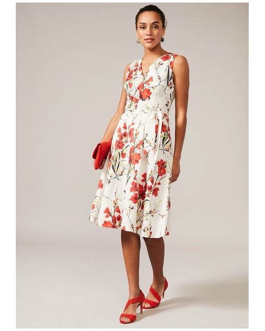 This stunning Phase Eight Sofia Floral Cotton Dress is perfect for any occasion. The dress features a beautiful floral pattern in a vibrant red colour, making it a real showstopper. The fit and flare style is flattering for all body shapes and the midi length makes it suitable for both formal and casual events. Crafted from high-quality cotton, this dress is comfortable and durable. The dress is available in a size M, making it a great choice for women who want to look stylish and chic. Whether you're going to a wedding, a party, or simply out for a day on the town, this dress is sure to turn heads.