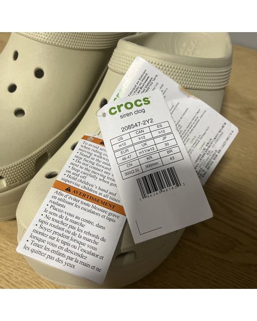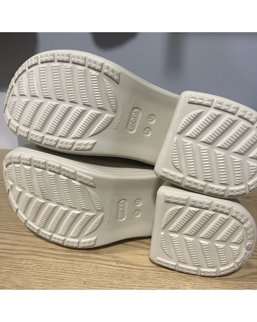 Introducing the Crocs Siren Heeled Clog in a beautiful bone color, perfect for any casual occasion. Made by the trusted brand Crocs, these clogs feature a comfortable rubber upper material and a stylish clog design. Available in multiple sizes, these shoes are perfect for women who want to add a touch of elegance to their wardrobe. The beige color complements any outfit and the heeled design adds a touch of sophistication. Don't miss out on this amazing opportunity to own a pair of Crocs Siren Heeled Clogs. Brand new without tags men’s size 11 / 12 Free, fast, tracked postage