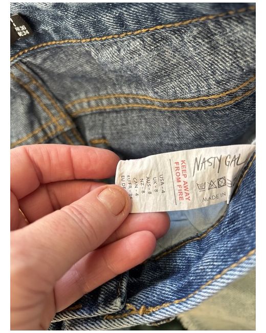 This pair of Nasty Gal jeans is a size 8 with a waist size of 26 inches and an inside leg of 28 inches. Made of cotton denim in a classic blue colour, these straight-fit jeans feature a 5-pocket design with a zip closure and button accents. Suitable for various seasons, this regular-fit piece from Nasty Gal is a stylish and versatile addition to any woman's wardrobe.