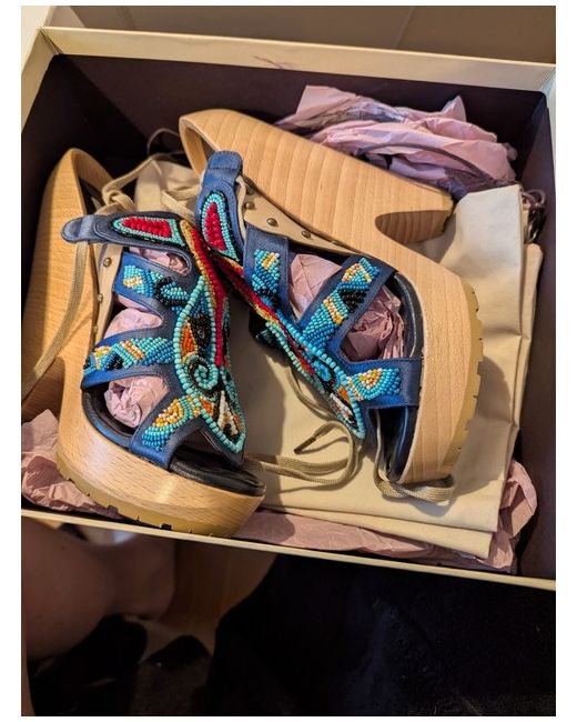 Multicolor McCartney beaded sandals 37 multi colour beads Wedge sole unworn