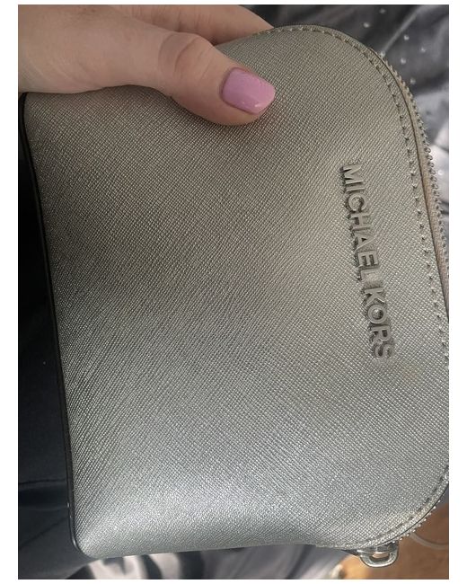 Silver Michael Kors Makeup Bag. Brand new never used. Small marks near the fabric/zip area of the bag, this is foundation hand prints. I think these will wipe off easily/wash. Other than that makeup bag is in perfect condition. Never used inside Price includes postage