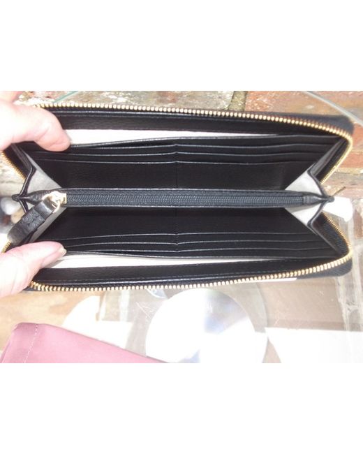 Inside purse has space for 12 cards, a zip coin section and 4 slots for notes. Colour is dark blue, black and white.
