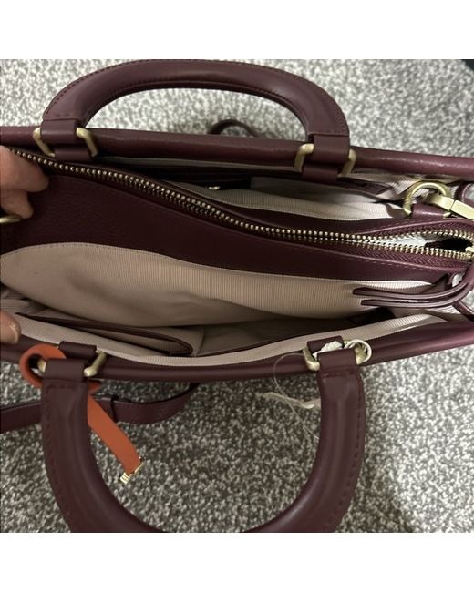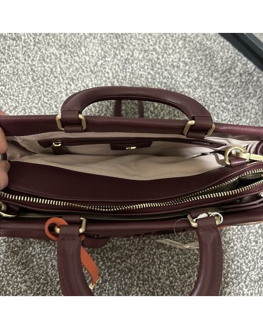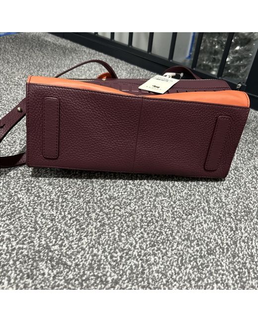 This elegant piece boasts a striking purple and orange stripe exterior, made from premium leather that speaks to both the whimsical and practical side of its owner.