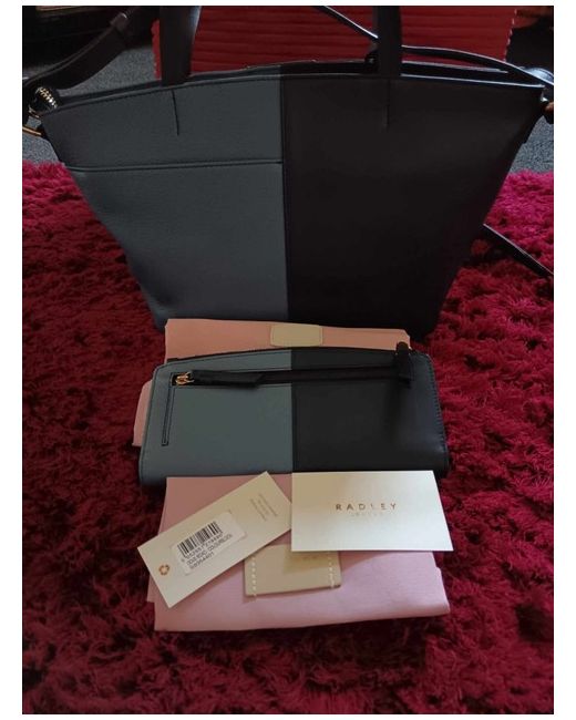 Radley NWT two tone blue block road multiway leather bag and large purse, detachable shoulder strap and grab handles if you prefer, zip top fastening with zip and slip pockets inside, large matching purse, this set is from a smok and pet free home, complete with dust bags and tags, measurements are W35 H19cm