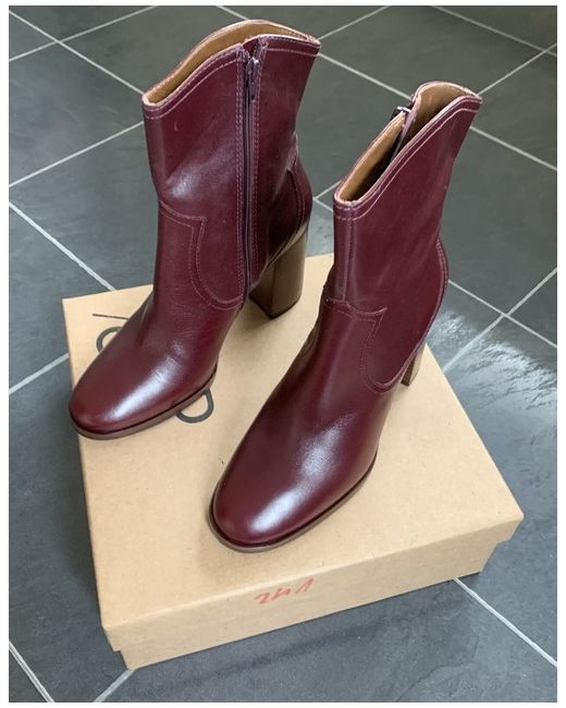 These blocked-heel Otto boots from AND/OR are a must-have for the season. Tapping into the paired back western trend, this dressy style has a flattering curved topline and western-inspired panel work at the toe and counter finished with heavy topstitching. Made for us, and you, in Brazil from a beautiful berry cow leather, these boots will grab everyone's attention, whilst the inside zip and leather lining offer easy wearing and all-day comfort. Clean regularly with good quality neutral or matching shoe polish. Use a soft cloth to apply and allow the polish to dry so the leather can absorb it properly. Then buff away any excess polish with a cloth or brush. By purchasing this product, you are supporting responsible leather manufacturing through the Leather Working Group.