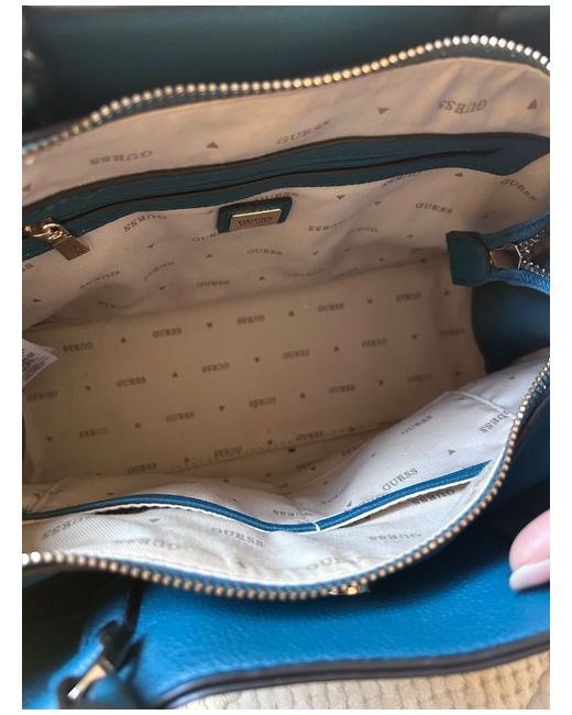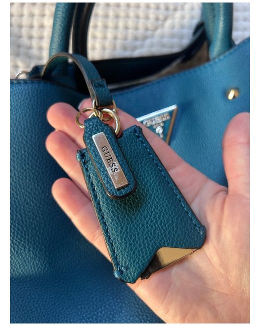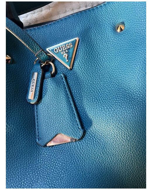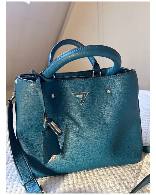 This Teal Tote Guess Bag for women features a satchel/top handle style, made of faux leather in a stylish blue-green colour. The exterior material and handle/strap material are both crafted from faux leather, offering a sleek and durable design. This bag is perfect for women looking for a trendy and functional accessory to complement their outfit. With the iconic GUESS branding, this bag exudes a sense of fashion and sophistication, making it a stylish choice for any occasion.